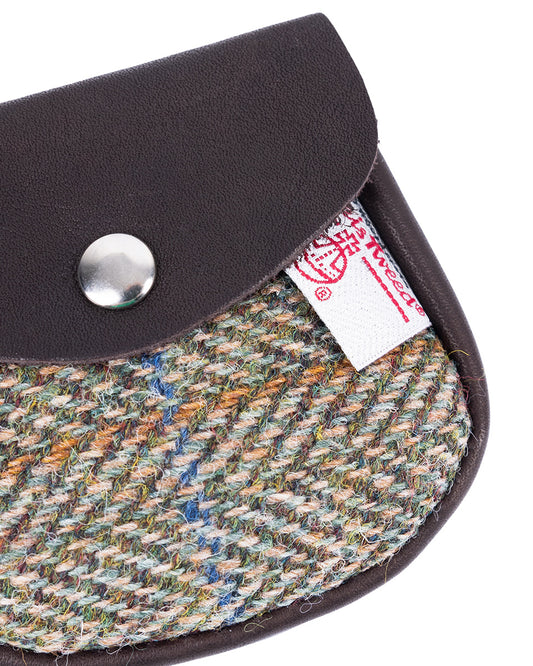 Harris Tweed and Deerskin Leather Purse in Green Herringbone