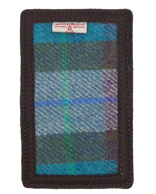 Turquoise Plaid Harris Tweed and Deerskin Leather Wallet