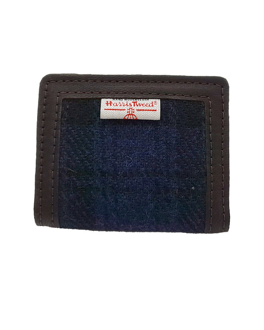 Navy Blue Plaid Harris Tweed and Deerskin Leather Wallet