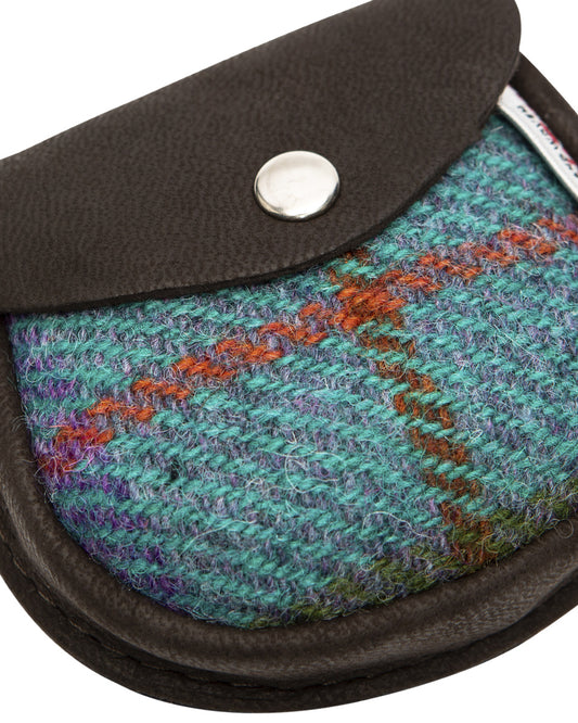 Harris Tweed and Deerskin Leather Purse in Turquoise Plaid