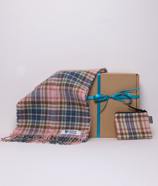 NewExclusivePink Castle Tartan Lambswool Scarf & Purse Gift Box