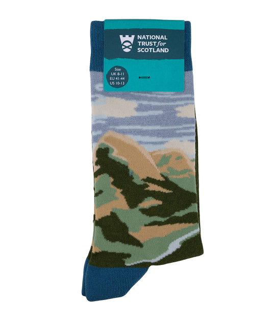 Sold outMix any 3 for £20Bamboo Socks with Glencoe Landscape Pattern - Size Large