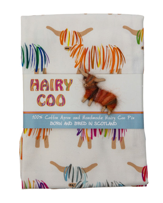 Hairy Coo Highland Cow Apron with Pin Brooch
