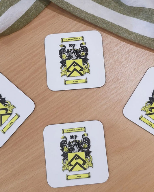 Set of 4 Coasters with Family Crest (Coat of Arms)