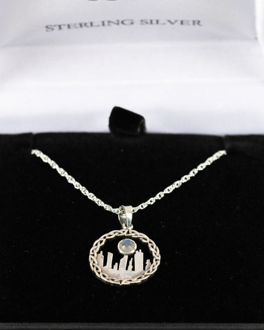 Outlander Inspired Standing Stones Silver Pendant with Moonstone