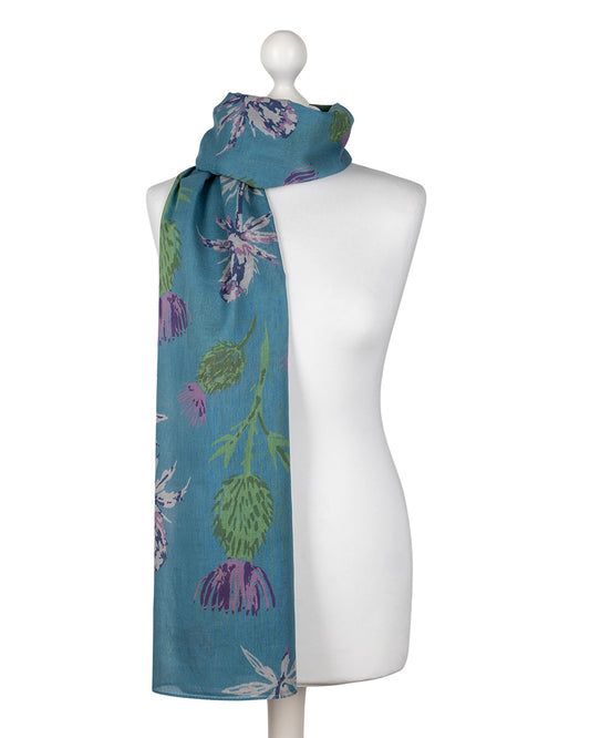NewExclusiveTeal Green Thistle Silk Scarf
