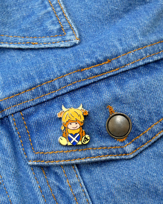 ExclusiveHappy Highland Cow Saltire Pin Badge