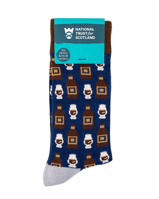 ExclusiveMix 3, Save on 1Bamboo Socks with Whisky Themed Pattern - Size Large