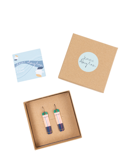 SaleExclusivePink Castle Tartan Inspired Block Earrings