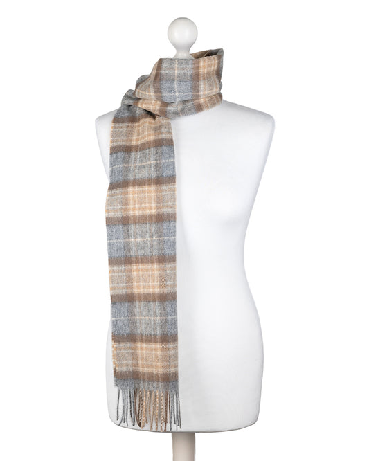 Mackellar Natural Tartan Cashmere Scarf