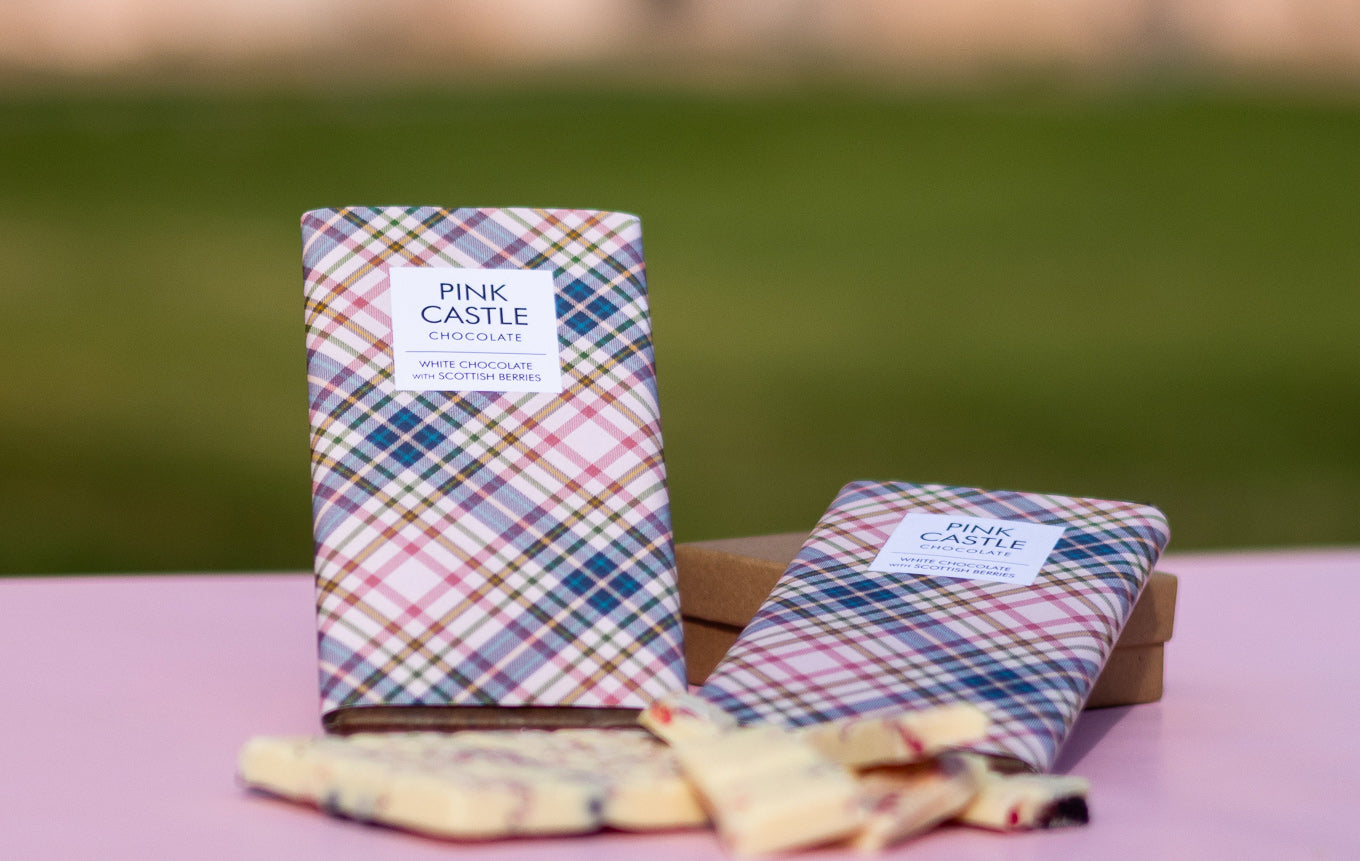 The clothing accessories range includes our exclusive Pink Castle Tartan scarf, matching pink tartan serapes, ponchos, shawl and a blanket. We also have an exclusively designed artwork range by Helen Ruth. The Pink Castle jewellery range includes unique pieces designed by Jenni Douglas inspired by the Castle’s architecture and history. The alcohol range will include a delicious Scottish Pink Castle Gin distilled by Lost Loch Distillery which is perfect for enjoying any evening of the week. Finally, the chocolate is inspired by the Pink Castle and brought to life by the 'Quirky Chocolates' designers.